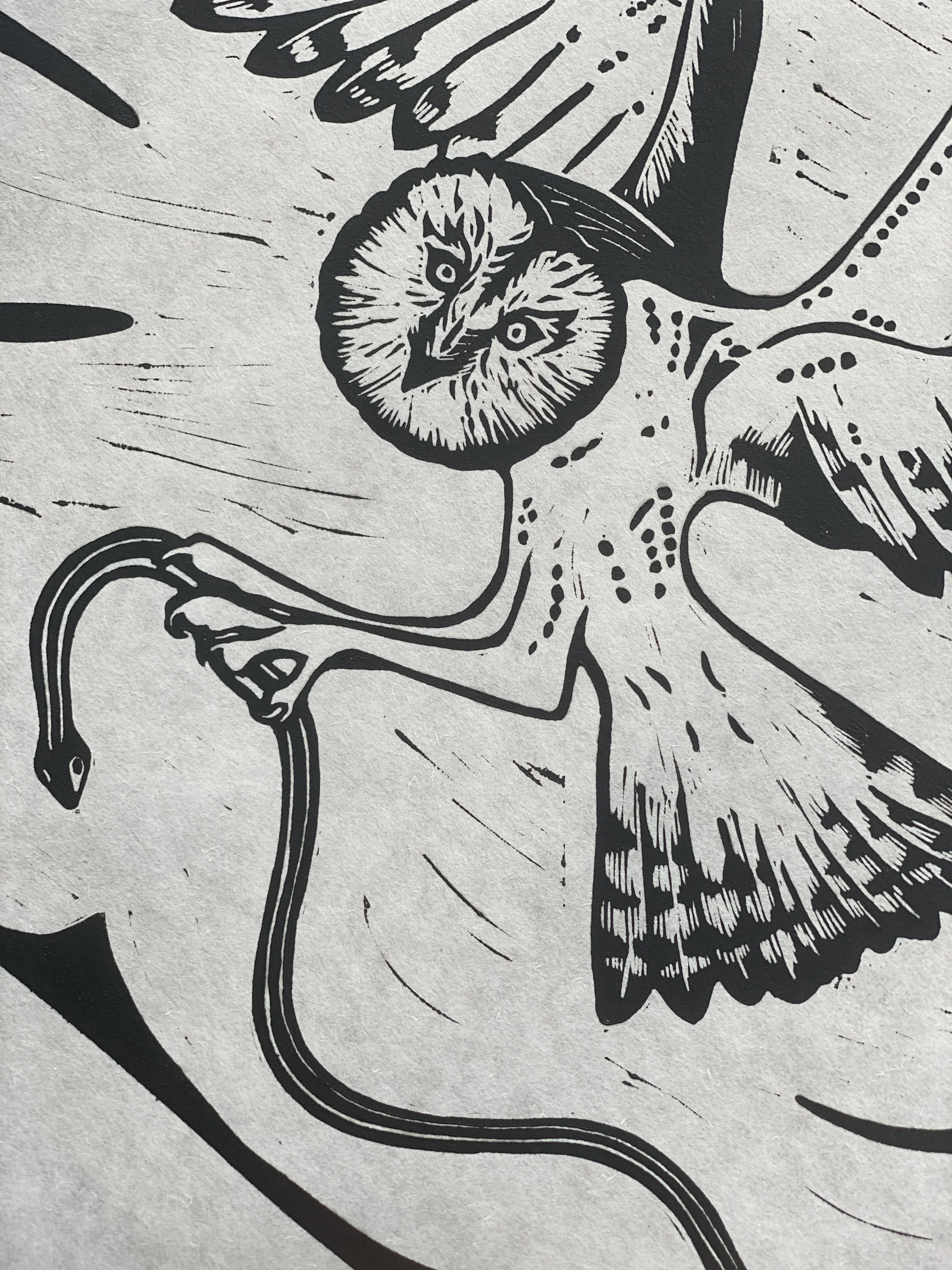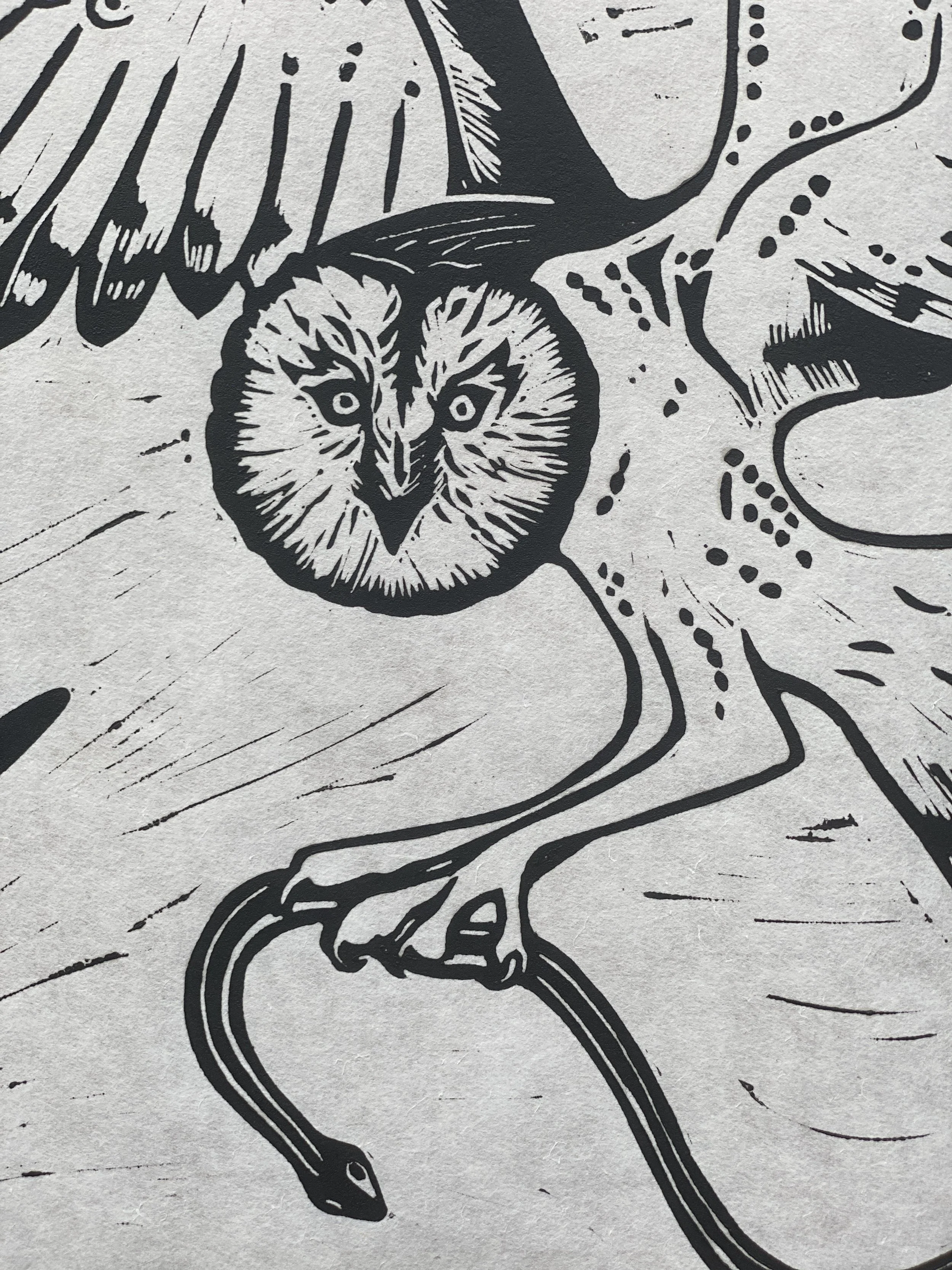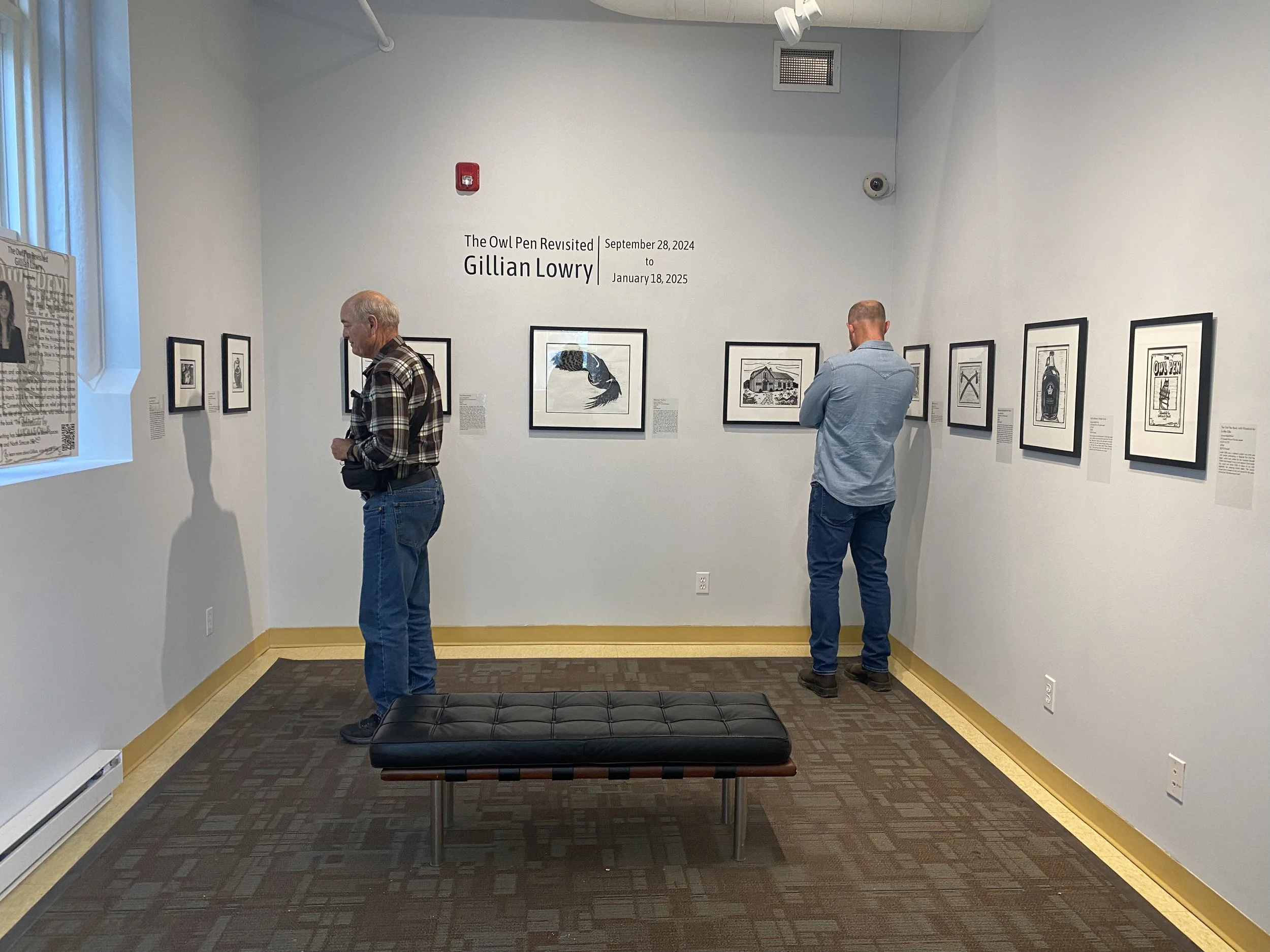 Gillian’s print show, The Owl Pen Revisited, ran from September 2024 to January 2025, at The Orillia Museum of Art and History. She has also shown in Stack Gallery in Orillia, and The One of a Kind Show in Toronto. She has been involved in multiple outdoor public art pieces as part of Street’s Alive in Orillia, Ontario.
